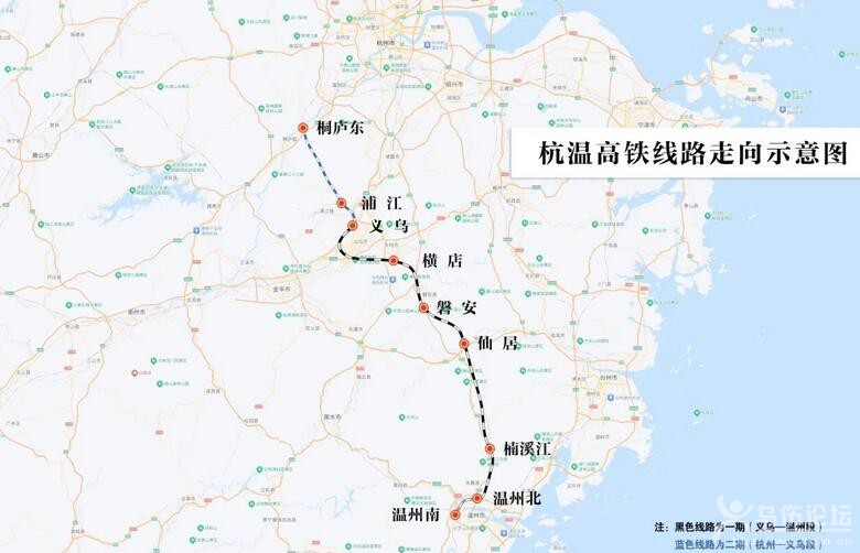 正文摘要:杭溫高鐵自杭州市桐廬東站引出,途經(jīng)金華市、臺(tái)州市、溫州市,引入溫州北站,通過(guò)既有杭深鐵路延伸至溫州南站,正線全長(zhǎng)276公里,設(shè)計(jì)時(shí)速350公里。全線設(shè)桐廬東、浦江、義烏、橫店、磐安、仙居、楠溪江、溫 ... |